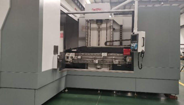 機床的床身是由多節床體組合而成,床體是三面封閉且有斜置筋板的結構,剛性較好。床身導軌式矩形的,承受能力大,導向精度好,導軌經過了淬火處理,耐磨性較高。